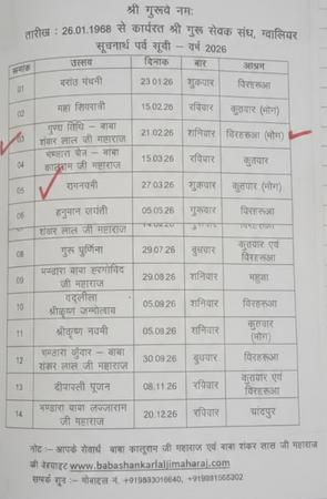 ग्वालियर वर्ष 2025 सूचनार्थ पर्व सूची उत्सव